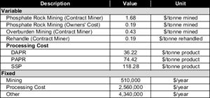 A nominal amount of $3.5 million USD per year was included in the budget as sustaining capital. This allocation is intended to cover the ongoing costs associated with replacements and rebuilds of both plant and Itafos-owned equipment. As the project advances beyond the PEA stage, it will be necessary to develop a more detailed sustaining capital schedule and budget through evaluation of equipment lifecycles, anticipated replacement intervals, and specific rebuild requirements for plant and mine assets.
